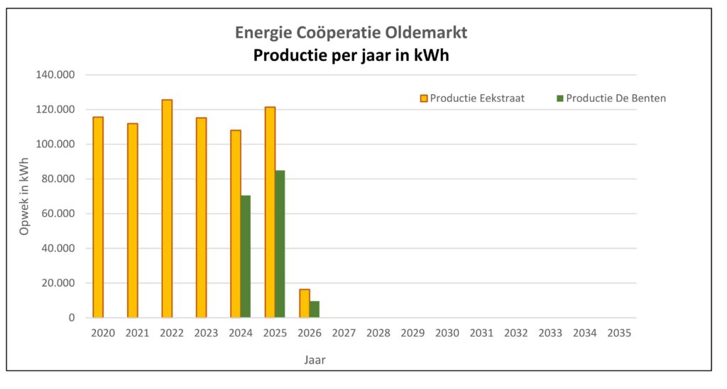 Er wordt een ‘knip’ in de tijd gemaakt met de panelen die er al liggen, zodat de gebruiksperiode voor alle panelen steeds (ten minste) 15 jaar blijft.